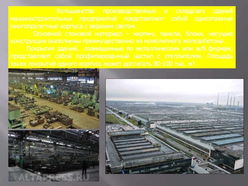 Слайд 3 Большинство производственных и складских зданий машиностроительных предприятий представляют
