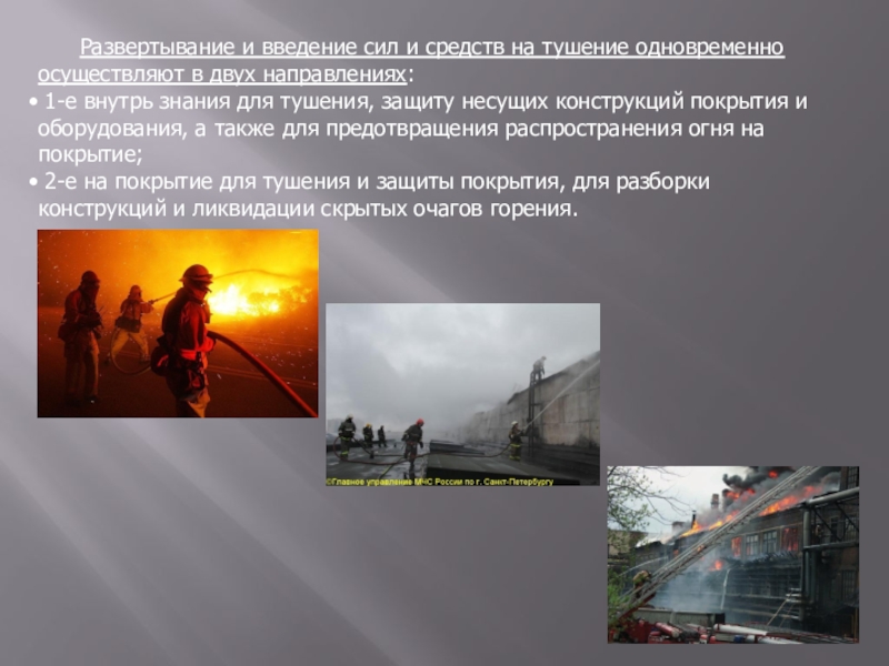 Слайд 14 Развертывание и введение сил и средств на тушение