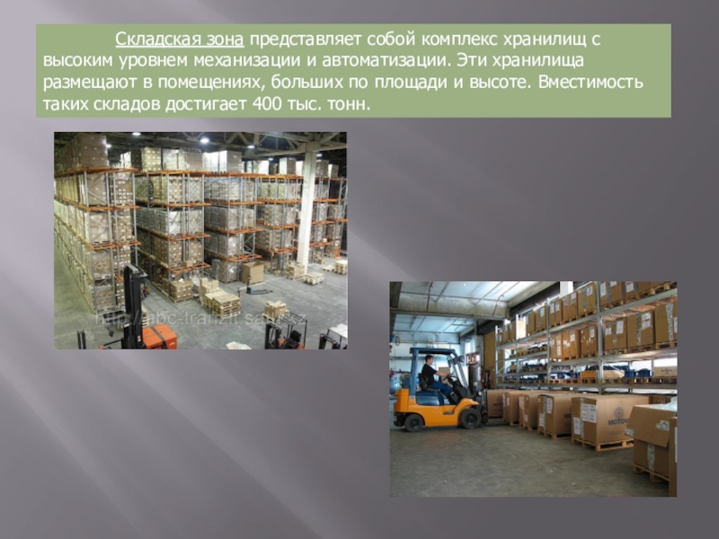 Слайд 5 Складская зона представляет собой
