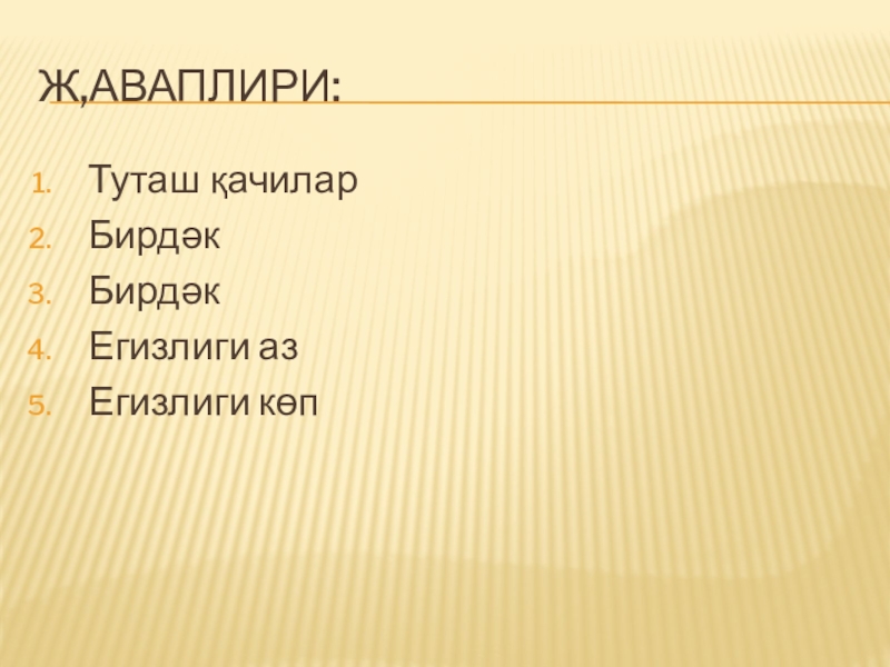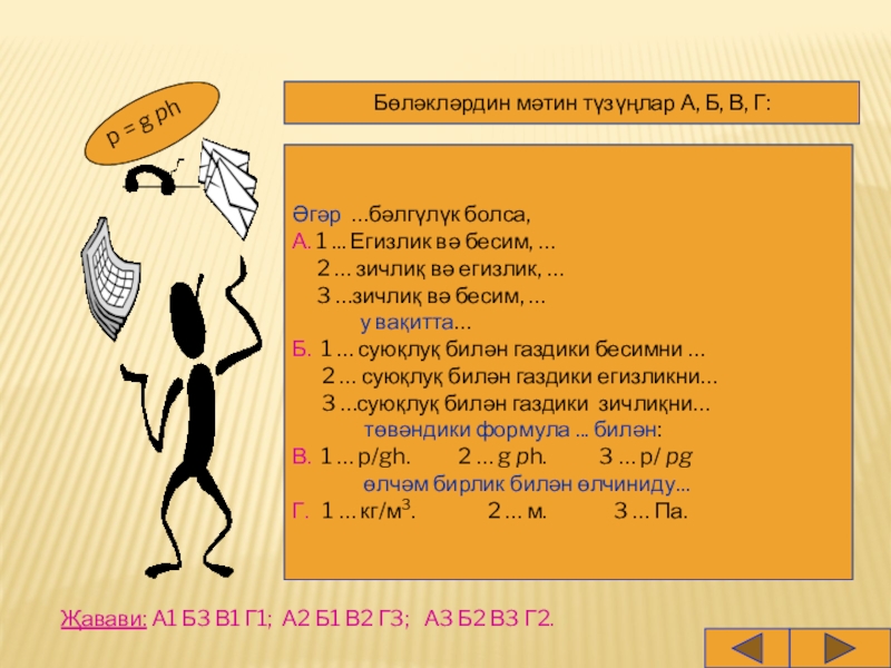 Җавави: А1 Б3 В1 Г1; А2 Б1 В2 Г3; А3 Б2 В3 Г2.