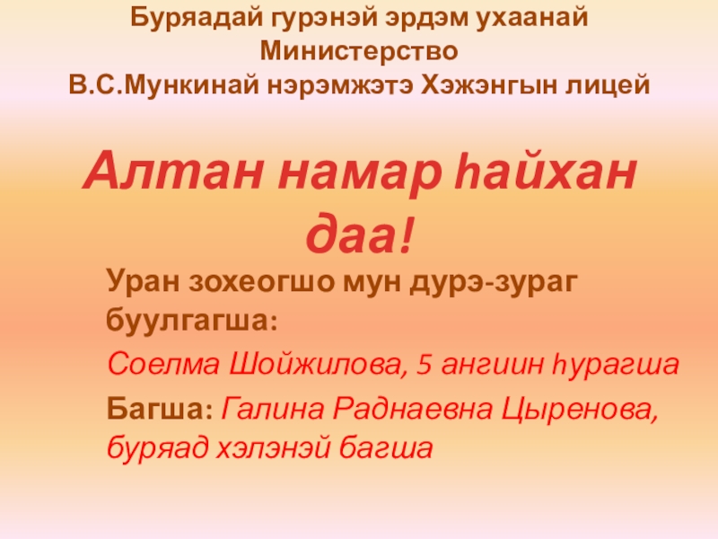 Багша: Галина Раднаевна Цыренова, буряад хэлэнэй багша
