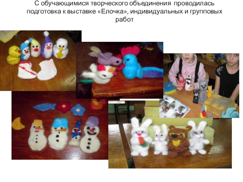 Слайд 16С обучающимися творческого объединения проводилась подготовка к выставке «Елочка», индивидуальных и