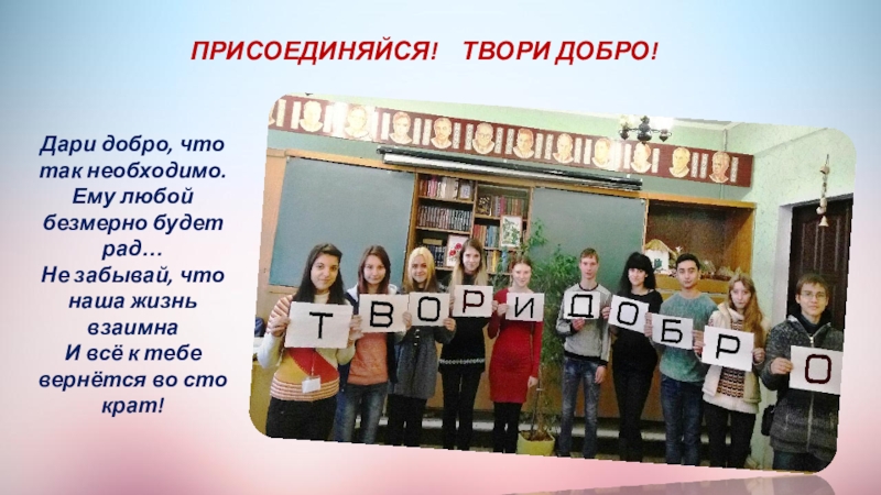 Это сайт презентаций, где можно хранить и обмениваться своими презентациями, докладами, проектами, шаблонами в формате PowerPoint с другими пользователями. Мы помогаем школьникам, студентам, учителям, преподавателям хранить и обмениваться учебными материалами.