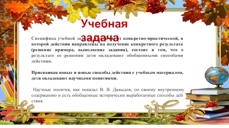 она специально направлена на овладение учебным материалом и решение учебных задач