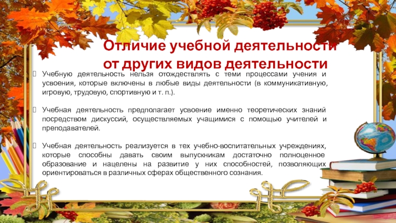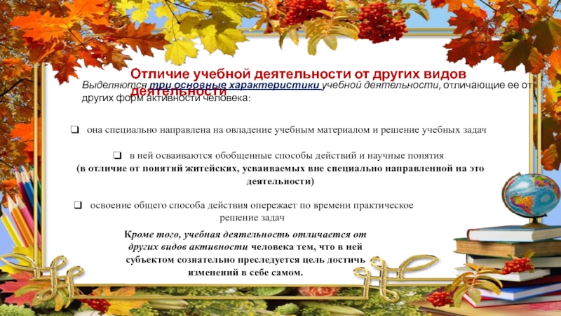 Основные характеристики учебной деятельности, отличающие ее от других форм учения