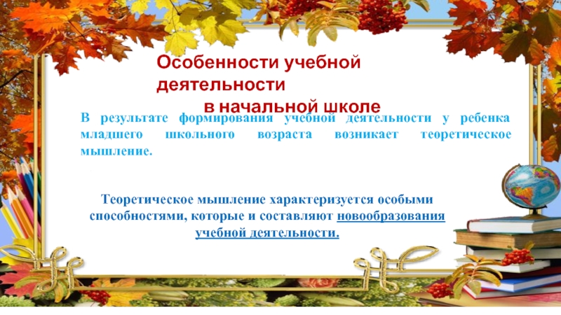 В результате формирования учебной деятельности у ребенка младшего школьного возраста возникает теоретическое мышление.