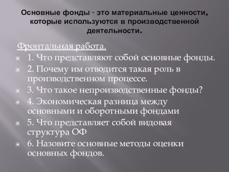 Слайд 2Основные фонды - это материальные ценности, которые используются в производственной деятельности.