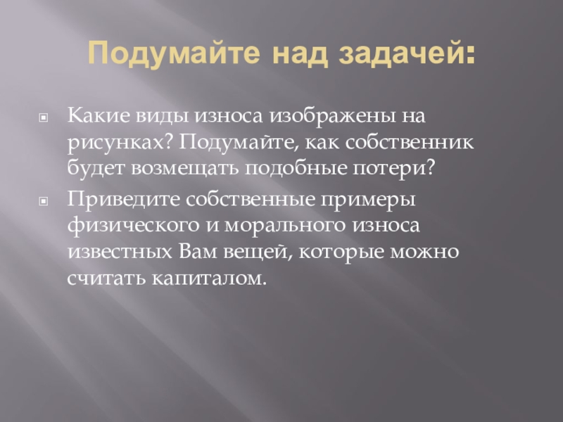 Приведите собственные примеры физического и морального износа известных Вам вещей, которые можно считать капиталом.