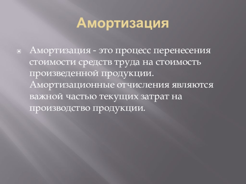 Амортизация - это процесс перенесения стоимости средств труда на стоимость произведенной