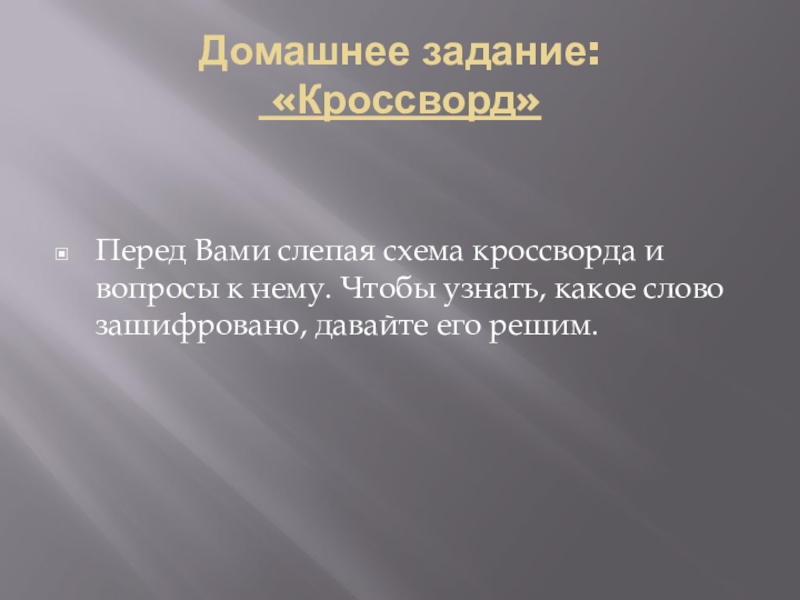 Перед Вами слепая схема кроссворда и вопросы к нему.
