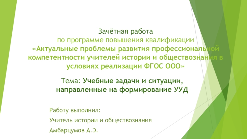 Тема: Учебные задачи и ситуации, направленные на формирование УУД