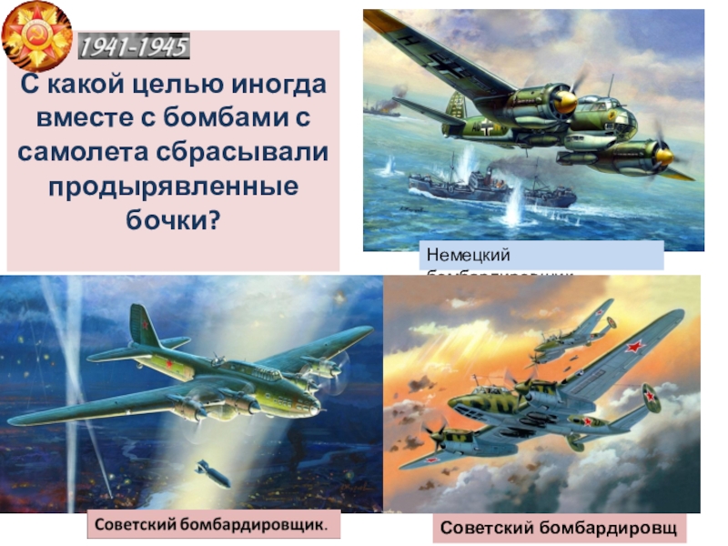 Слайд 3С какой целью иногда вместе с бомбами с самолета сбрасывали продырявленные