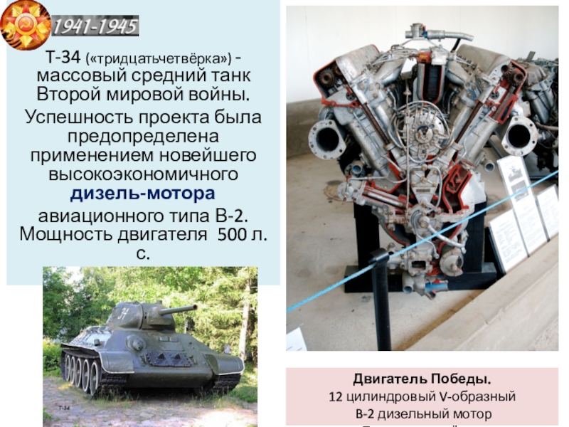 На танке Т-34 был тип двигателя – дизель. Успешность