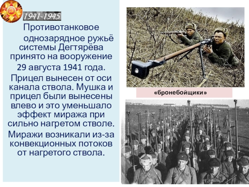 Противотанковое однозарядное ружьё обр. 1941 г. системы Дегтярёва принято