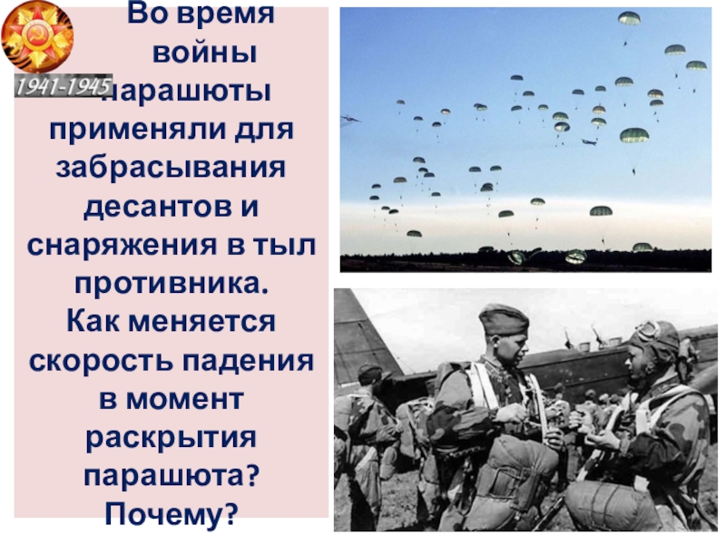 парашюты применяли для забрасывания десантов и снаряжения в тыл противника.