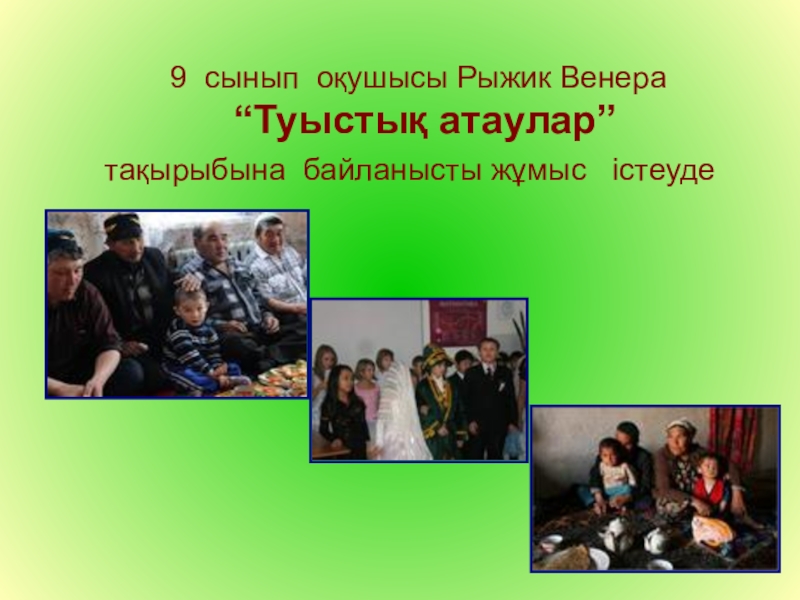 Слайд 31 9 сынып оқушысы Рыжик Венера“Туыстық атаулар”