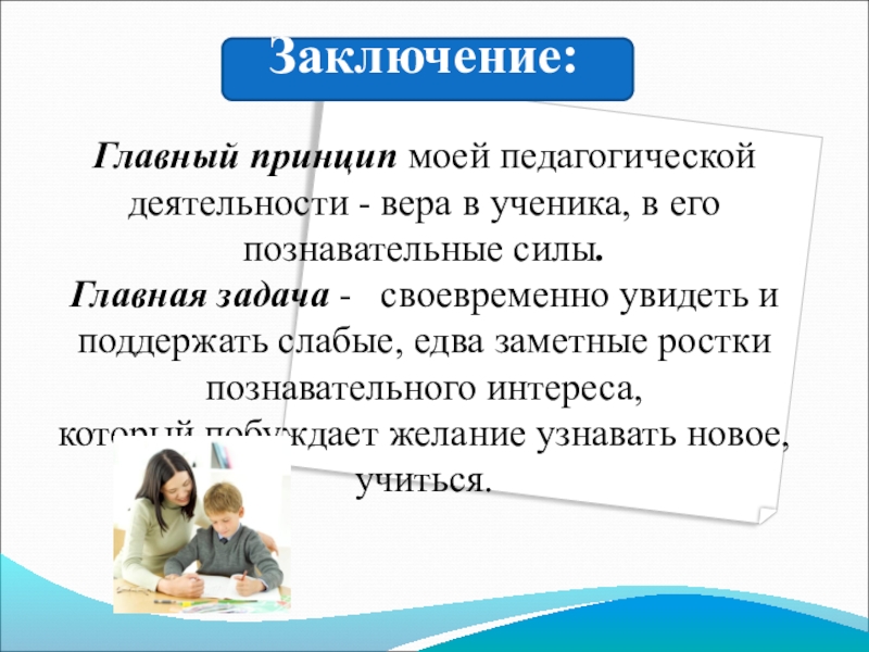 Главный принцип моей педагогической деятельности - вера в ученика, в его познавательные