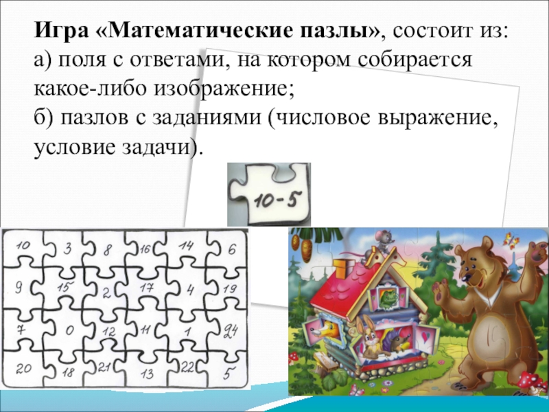 б) пазлов с заданиями (числовое выражение, условие задачи).