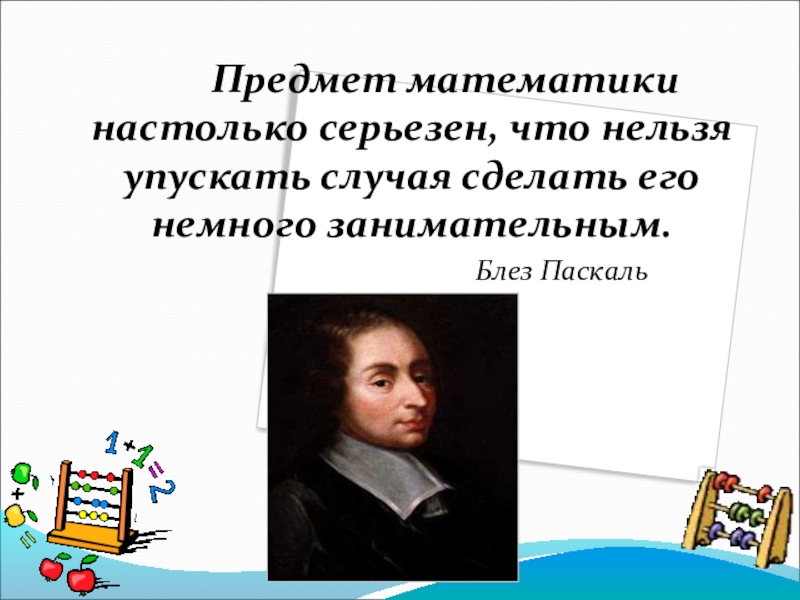 Слайд 3 Предмет математики настолько серьезен, что нельзя