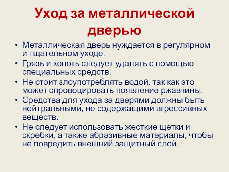 Металлическая дверь нуждается в регулярном и тщательном уходе.
