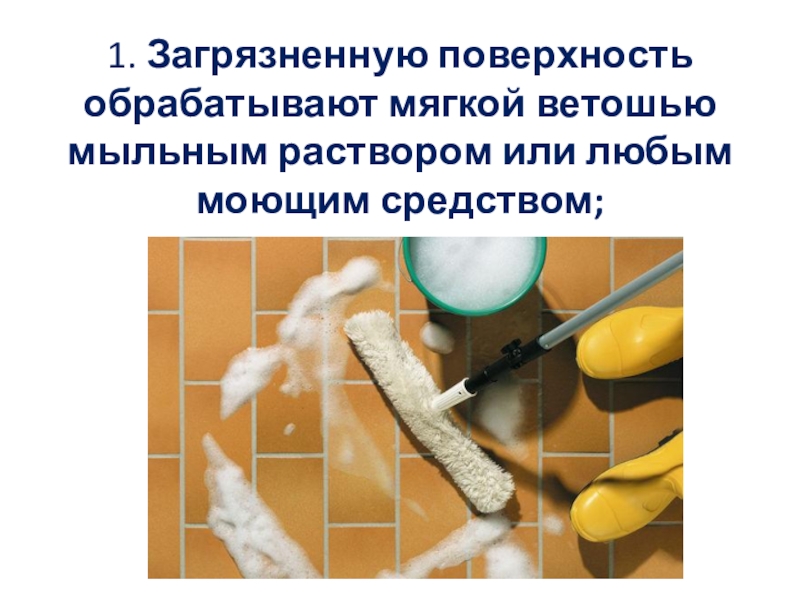 1. Загрязненную поверхность обрабатывают мягкой ветошью мыльным раствором или любым