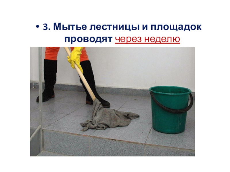 Слайд 313. Мытье лестницы и площадок проводят через неделю