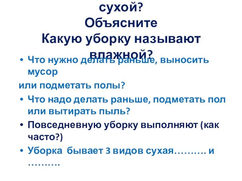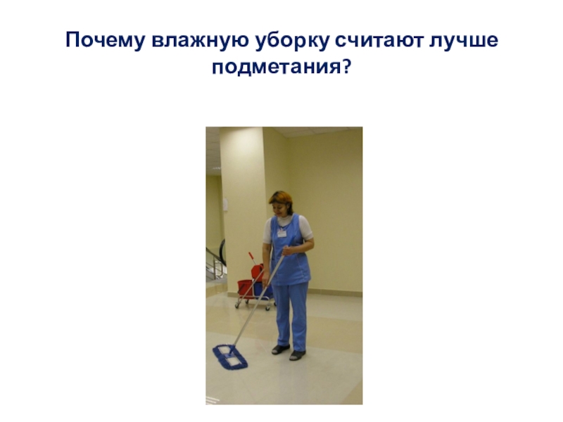 Слайд 6Почему влажную уборку считают лучше подметания?