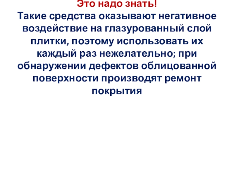Такие средства оказывают негативное воздействие на глазурованный слой плитки,