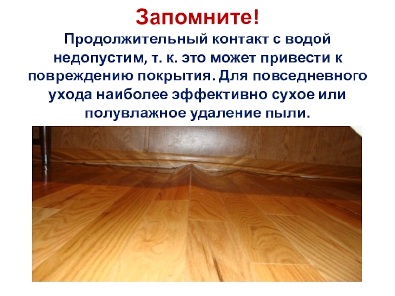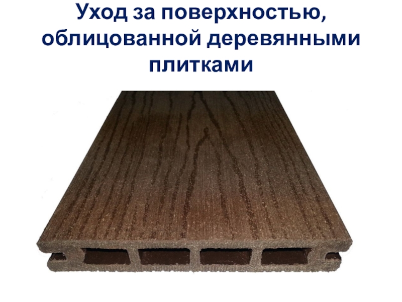 Слайд 21Уход за поверхностью, облицованной деревянными плитками