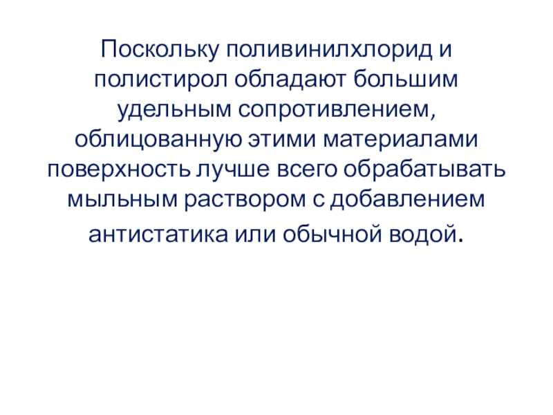 Поскольку поливинилхлорид и полистирол обладают большим удельным сопротивлением, облицованную этими материалами