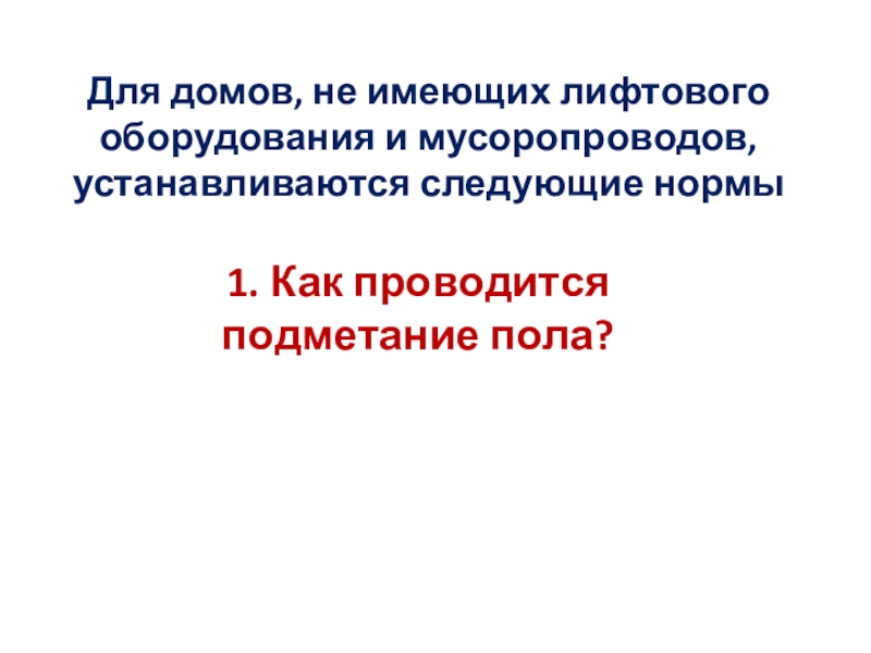 Слайд 26Для домов, не имеющих лифтового оборудования и мусоропроводов, устанавливаются следующие нормы