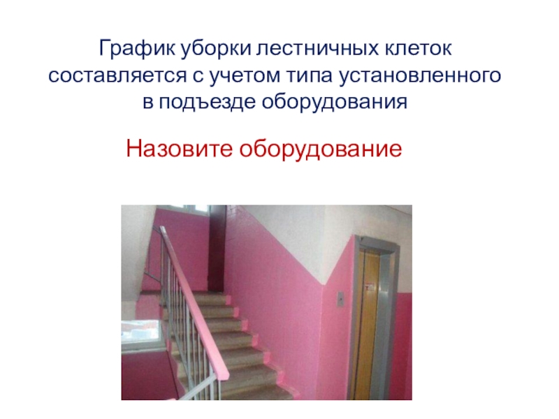 Слайд 25График уборки лестничных клеток составляется с учетом типа установленного в подъезде