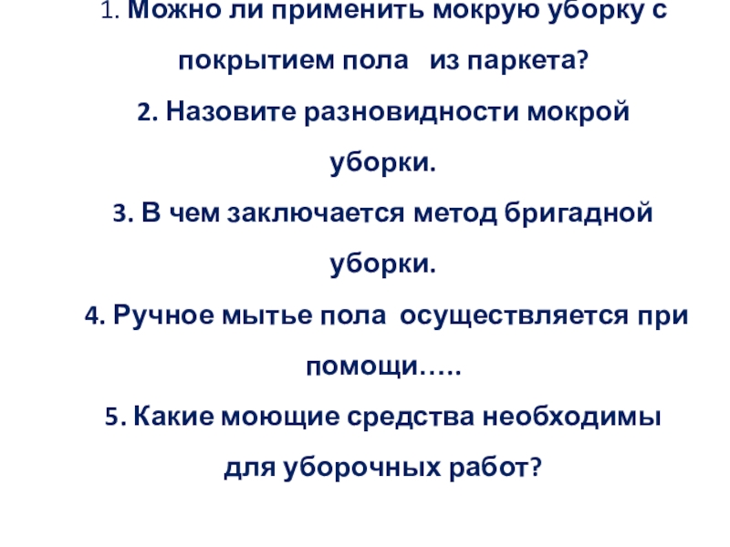 1. Можно ли применить мокрую уборку с покрытием пола из
