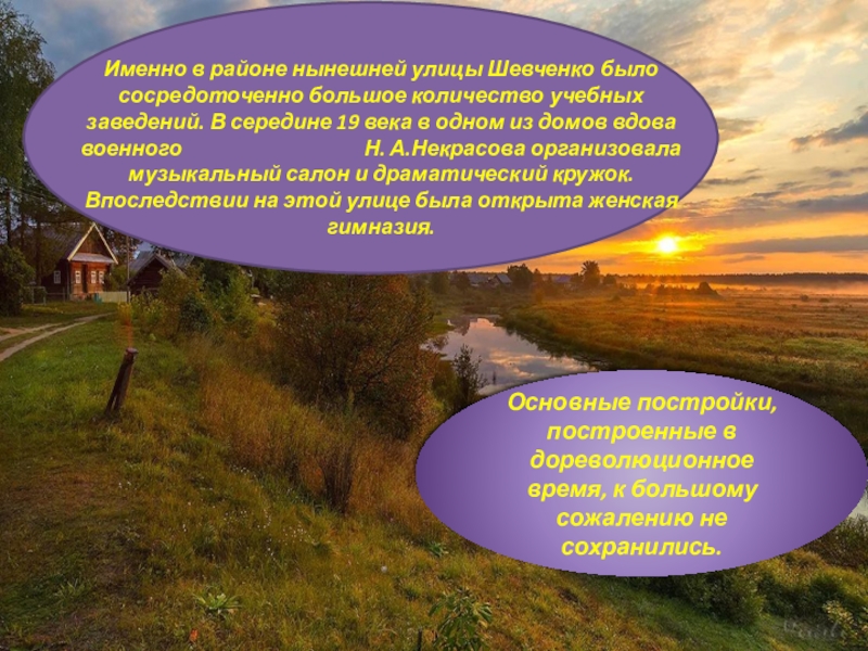 Основные постройки, построенные в дореволюционное время, к большому сожалению не сохранились.