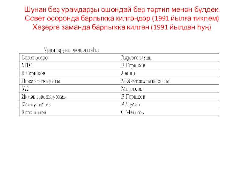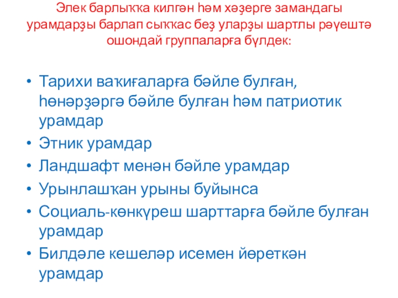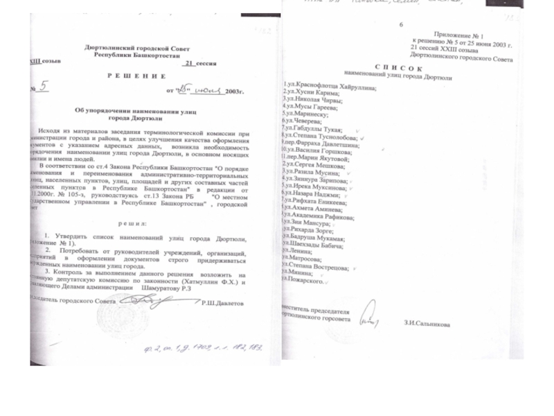Тарихи ваҡиғаларға бәйле булған, һөнәрҙәргә бәйле булған һәм патриотик урамдар