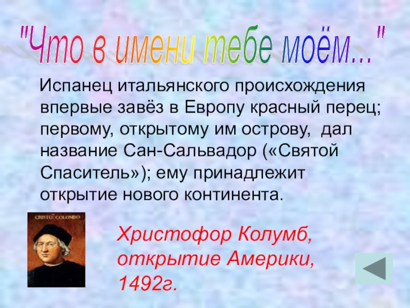 Христофор Колумб, открытие Америки, 1492г.