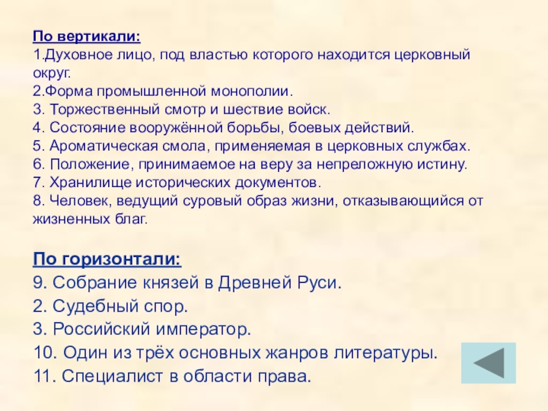 По горизонтали: