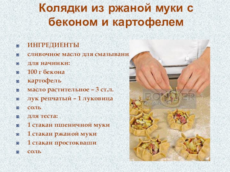 Слайд 6Колядки из ржаной муки с беконом и картофелем