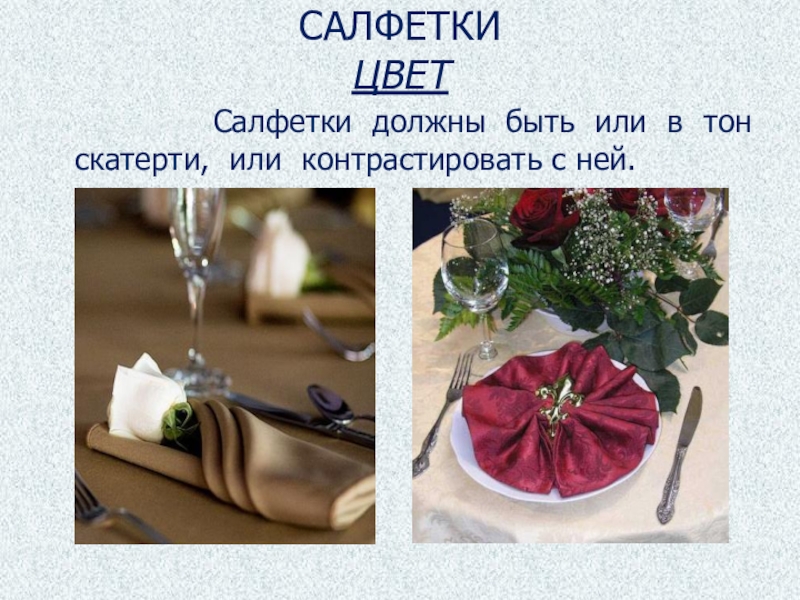 Слайд 49УКРАШЕНИЕ СТОЛА САЛФЕТКАМИ