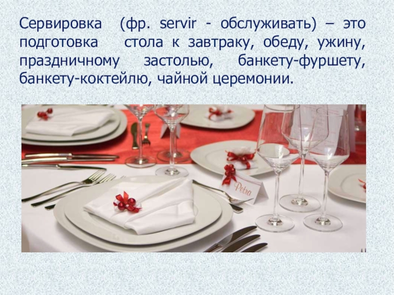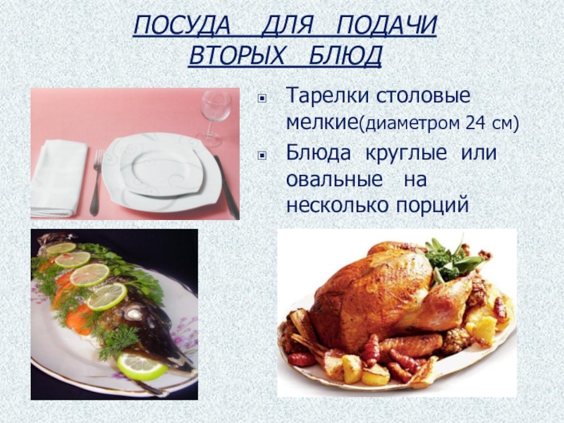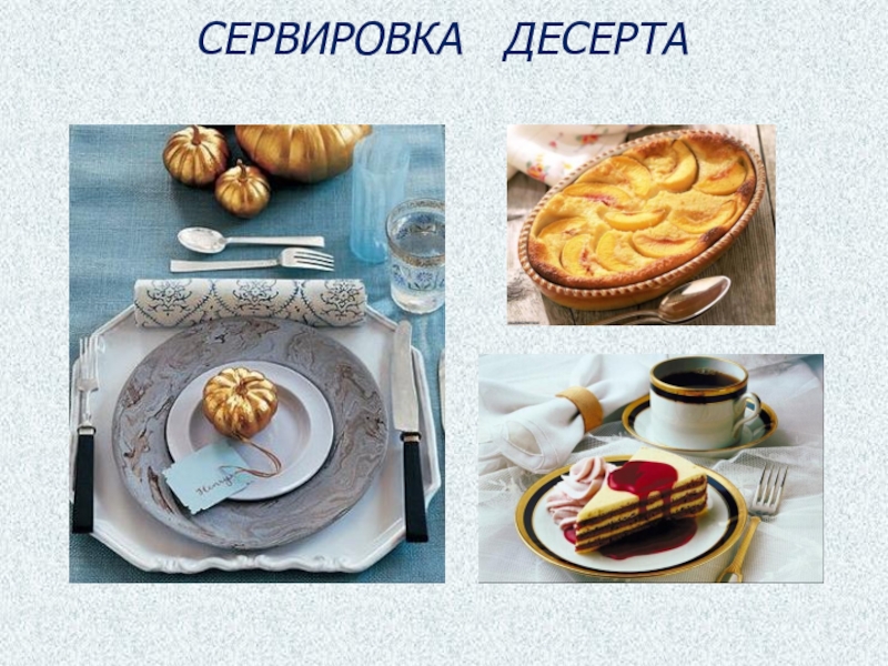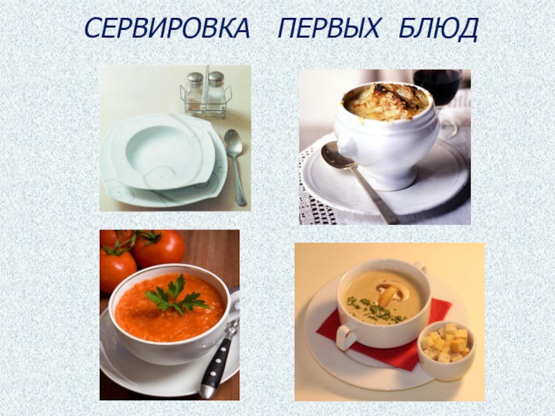 СЕРВИРОВКА ПЕРВОГО, РЫБНОГО, МЯСНОГО БЛЮДА И ДЕСЕРТА