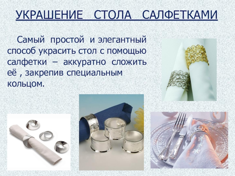 Слайд 50КОЛЬЦА ДЛЯ САЛФЕТОК