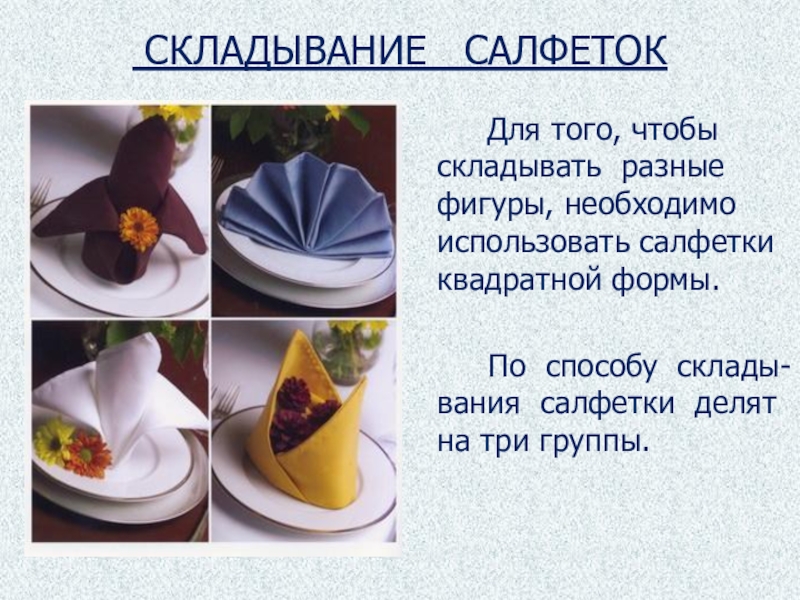 Слайд 51 СКЛАДЫВАНИЕ САЛФЕТОК