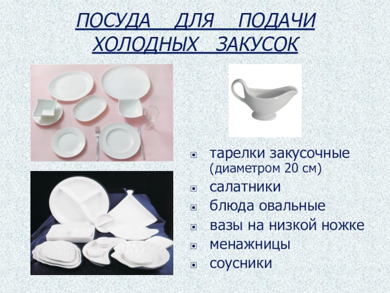 Слайд 34ПОСУДА ДЛЯ ПОДАЧИ