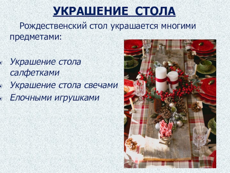 Слайд 48УКРАШЕНИЕ СТОЛА