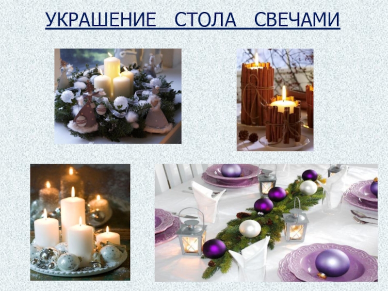 Слайд 59УКРАШЕНИЕ СТОЛА СВЕЧАМИ