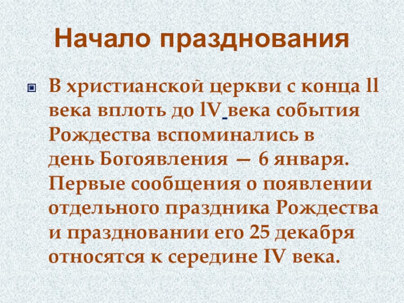 В христианской церкви с конца ll века вплоть до lV века события Рождества вспоминались в