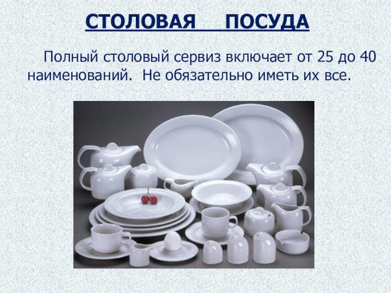 Слайд 29СТОЛОВАЯ ПОСУДА