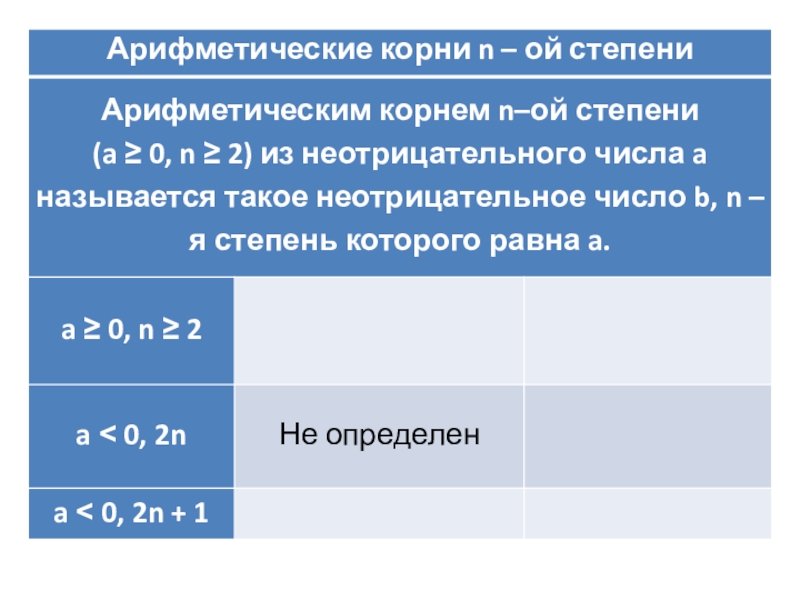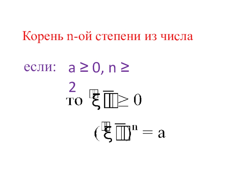 Корень n-ой степени из числаa ≥ 0, n ≥ 2если: