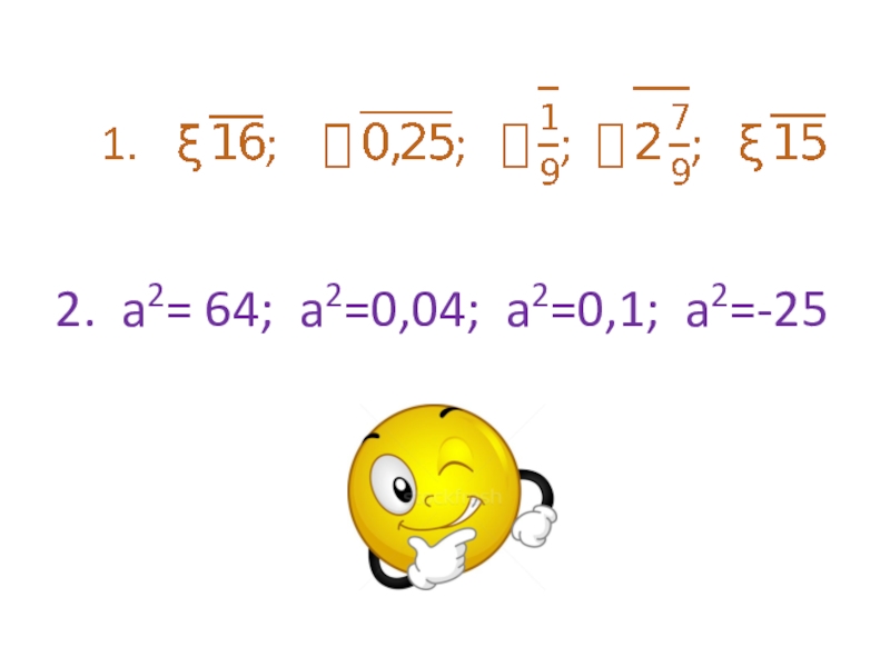 Слайд 42. a2= 64; a2=0,04; a2=0,1; a2=-25