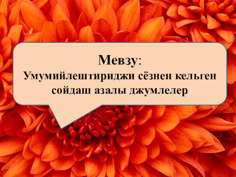Слайд 5Мевзу: Умумийлештириджи сёзнен кельген сойдаш азалы джумлелер